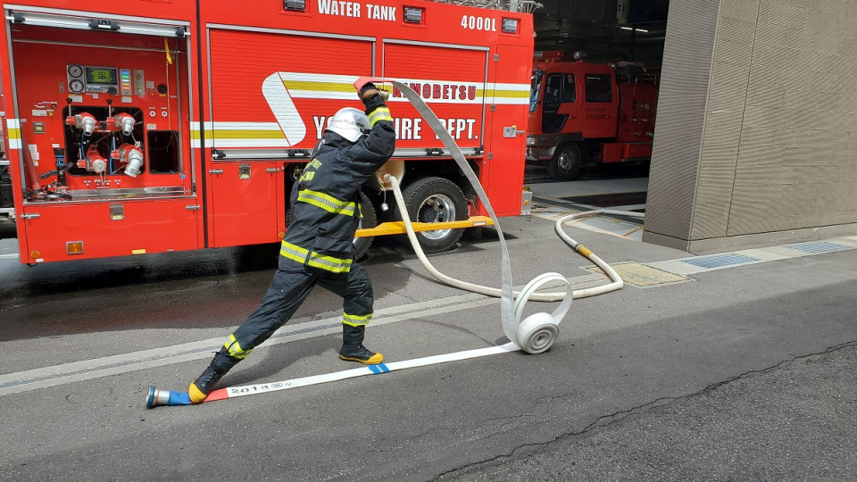今年度採用された新人消防士が4月から配属された喜茂別支署にて日々訓練し初任教育事前研修を終え、令和5年5月10日から令和5年9月22日までの約4ヶ月の間、江別市にある北海道消防学校にて消防職員として必要な知識と技術を学ぶため初任教育課程に入校し訓練に励みます。