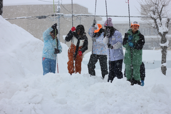 今回の学習会では屋根からの落雪で埋まった人を助けるという想定で活動を実施しました。