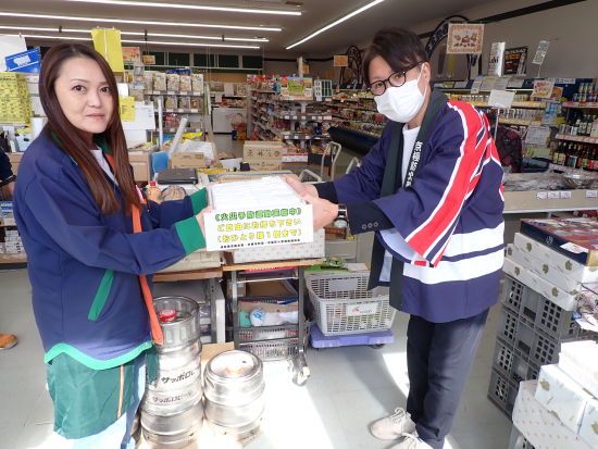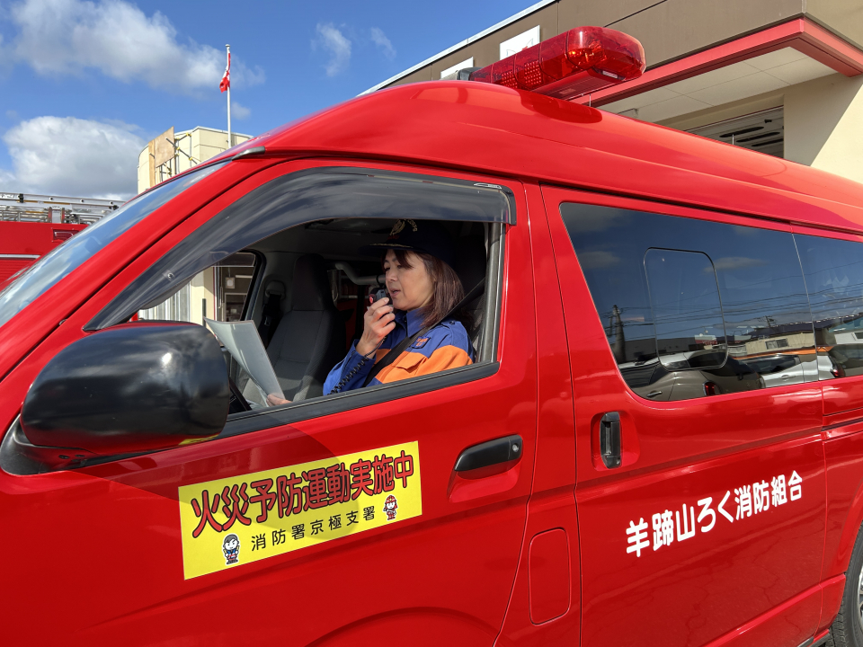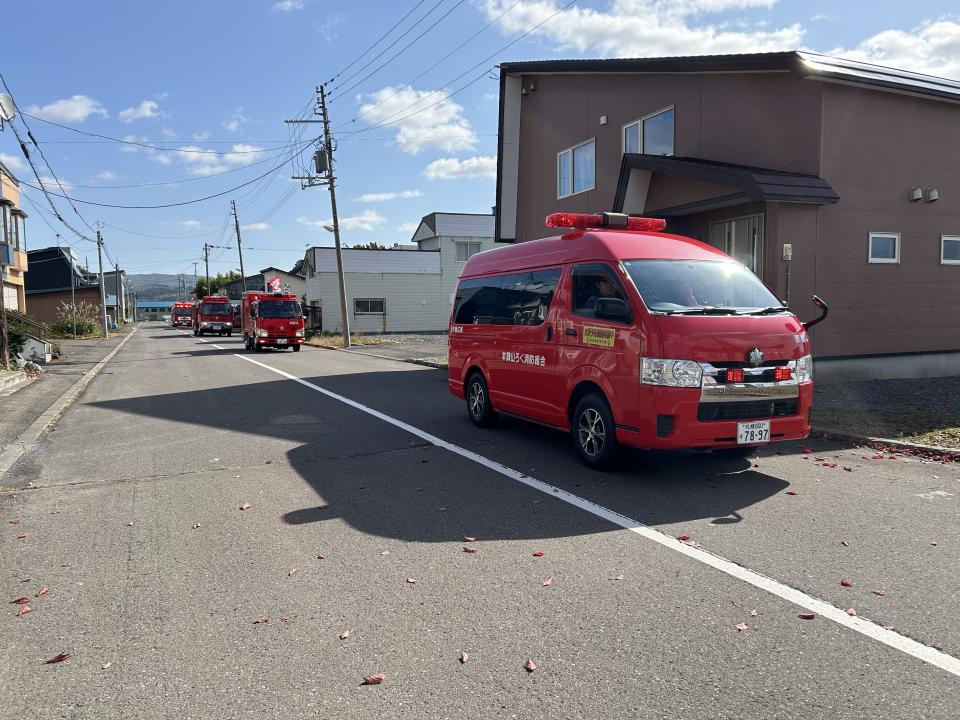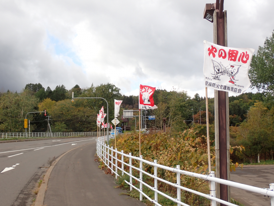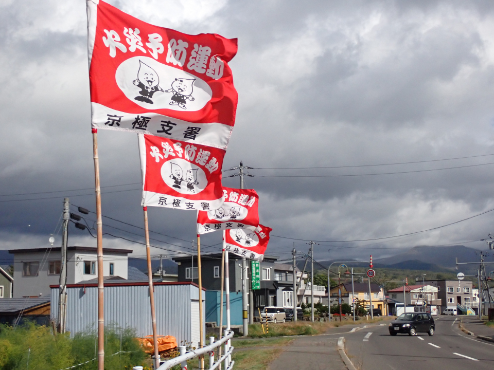 京極防火管理推進協会(富成善朗会長)及び羊蹄山ろく消防組合京極消防団(加藤恵団長)、消防署京極支署(阿部良秀支署長)は合同で、10月15日から10月31日まで行われる秋の火災予防運動に伴い、消防車による火災予防パレードを実施し、3条通り商店街へ防火タペストリー、役場庁舎へ防火懸垂幕、町内各地へ火の用心旗を設置しました。また、町内の事業所(京極温泉、名水プラザ、ヤマトモリ、Aマート)に火災予防啓発用タオル、ポケットティッシュ、チラシを配置し、火の用心を呼びかけました。