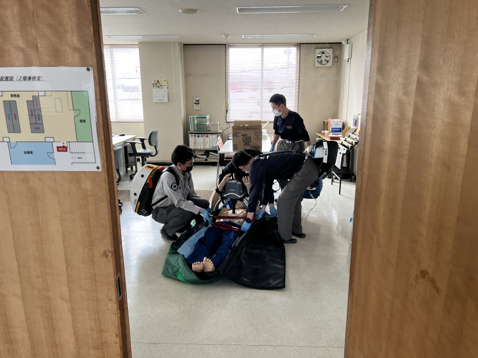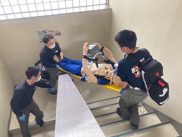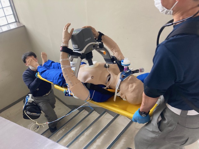 心臓や呼吸が止まった方を救うためには、心臓マッサージを中断することなく実施することがとても重要です。しかし、今までは搬送時又は、狭隘な場所では心臓マッサージを中断せざる得ないことが活動の課題でした。