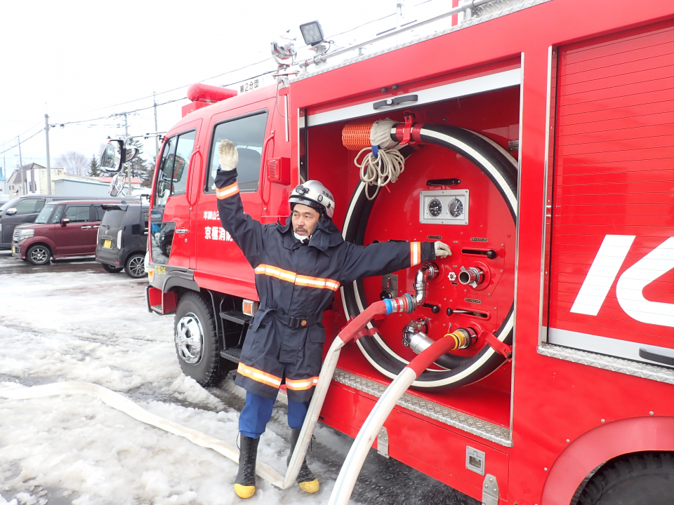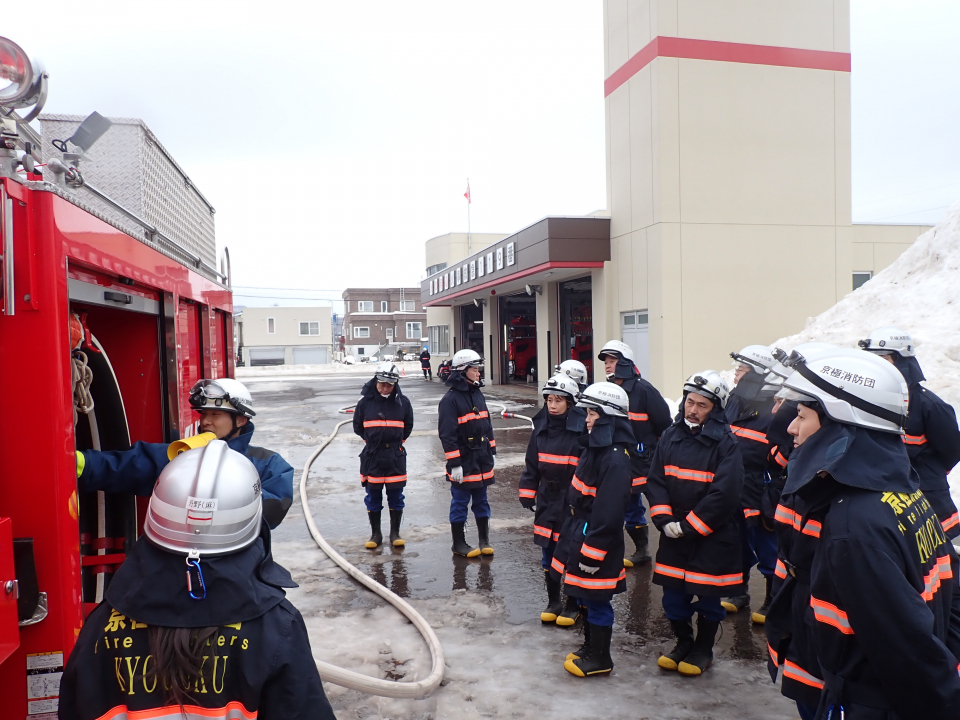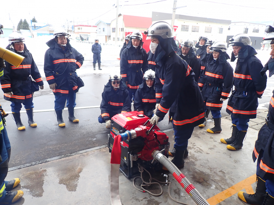 京極消防団(団長 加藤 恵)は、12月20日(土)に京極消防団総合訓練を実施しました。