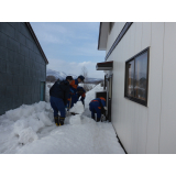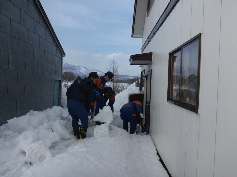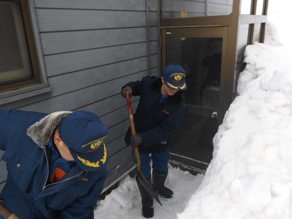 各家庭を訪問し、住宅用火災警報器が正しく設置されているか、避難経路が確保されているかなどを確認しました。また、避難口を確保するための除雪も併せて実施しました。
