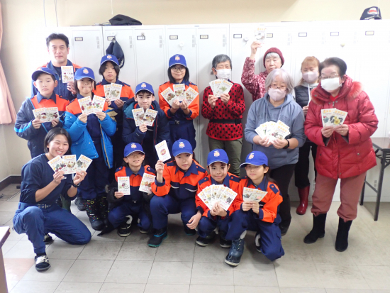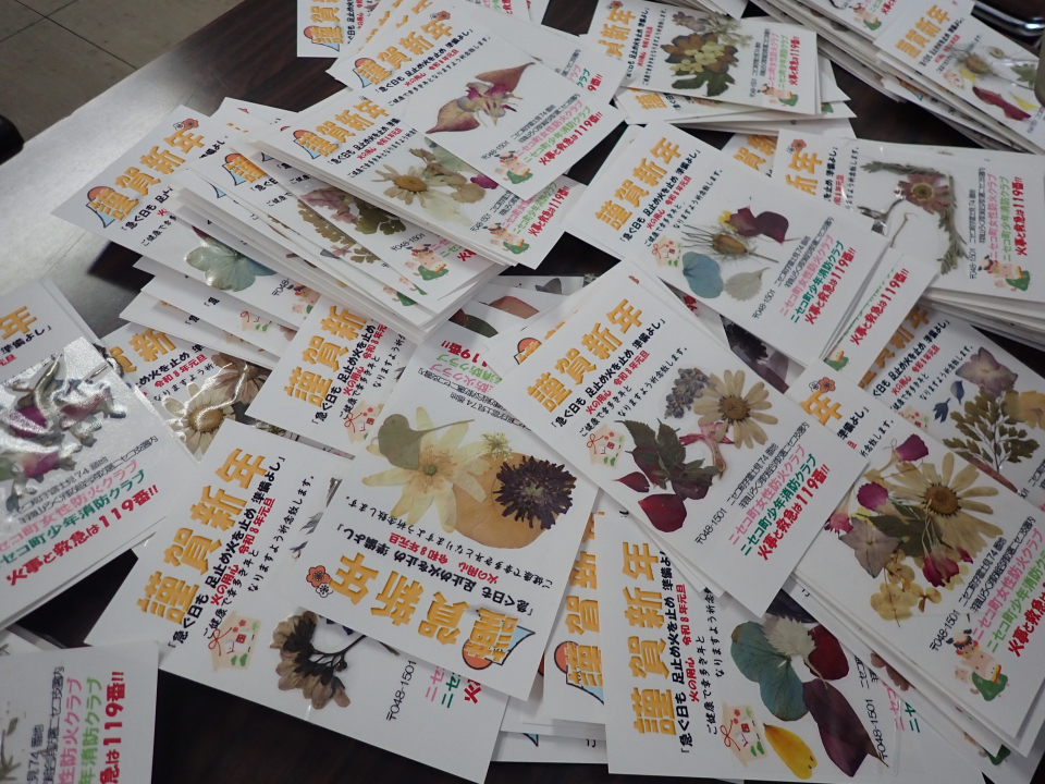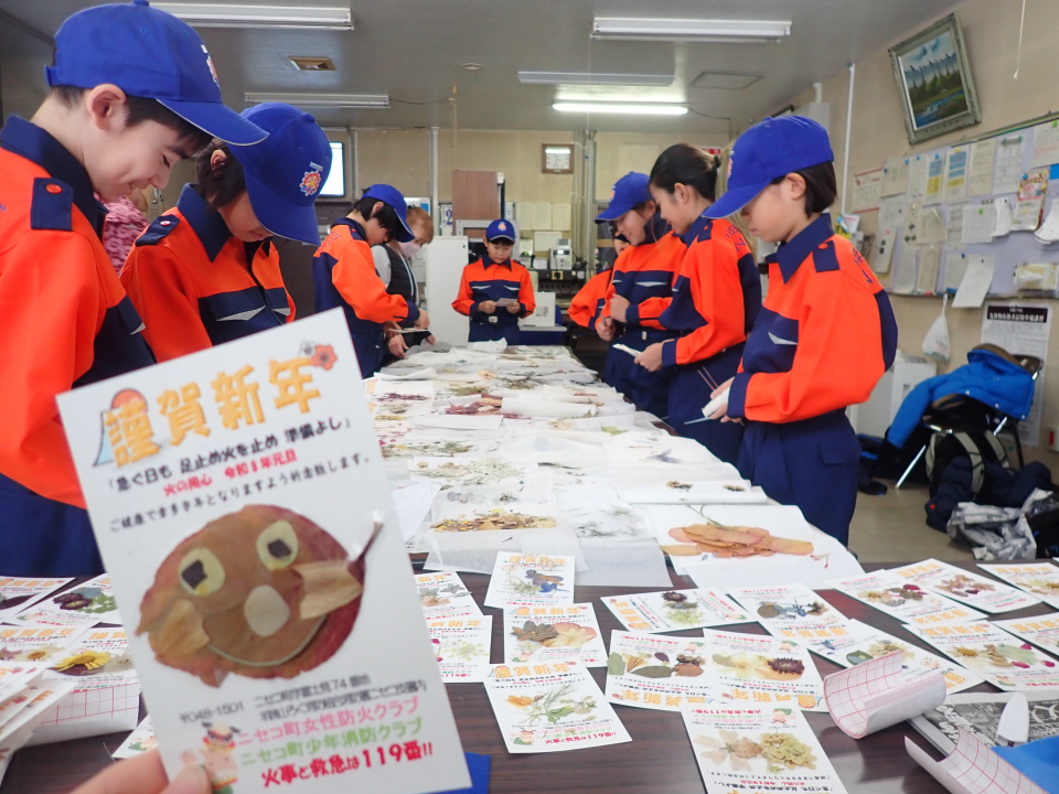 令和7年12月20日にニセコ町の女性防火クラブと少年消防クラブが合同でニセコ町内に住む独居高齢者に向けた年賀状の作成をしました。