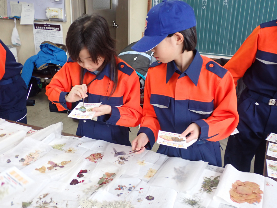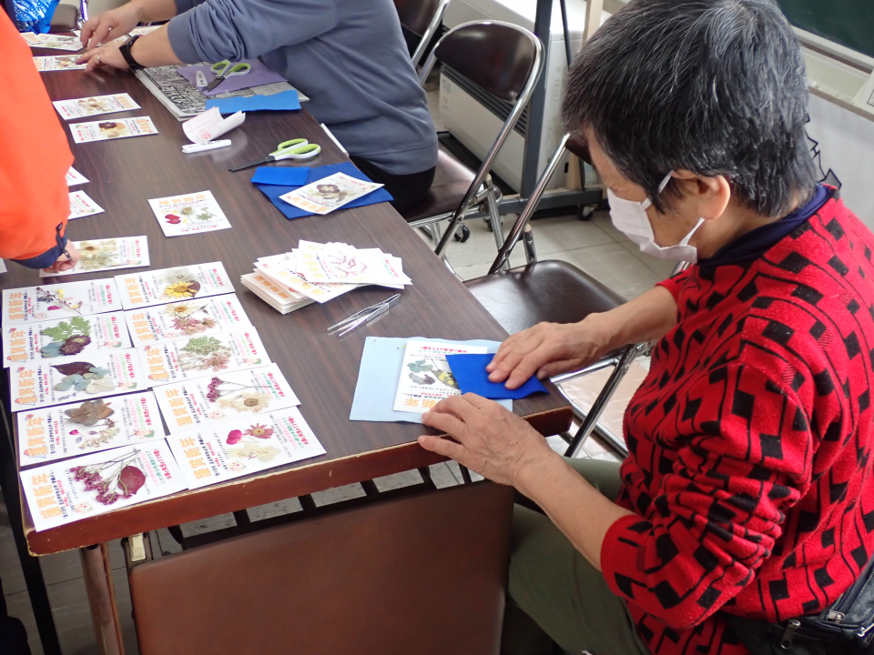 この活動は、1人暮らしの高齢者に新年の喜びを感じてもらうとともに、冬場に増加する火災への注意を呼びかけることを目的として毎年行われています。色鮮やかな押花を使用し、楽しみながら真剣に取り組んでいました。