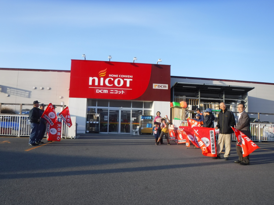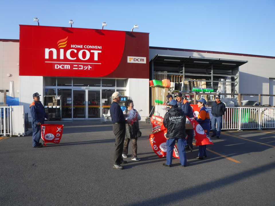 令和7年10月15日、DCMニコット蘭越店前にて蘭越消防団、蘭越消防後援会、消防署蘭越支署が合同で秋季火災予防運動に伴う防火啓発活動を実施しました。来店した多くのお客様に足を止めていただき火の用心を呼びかけ、防火啓発用品を配布することができました。